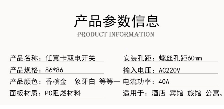 酒店宾馆民宿T5557取电开关